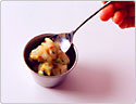 | ほたて貝と白身魚の刺身を5〜6mmにたたいておく。 | |||